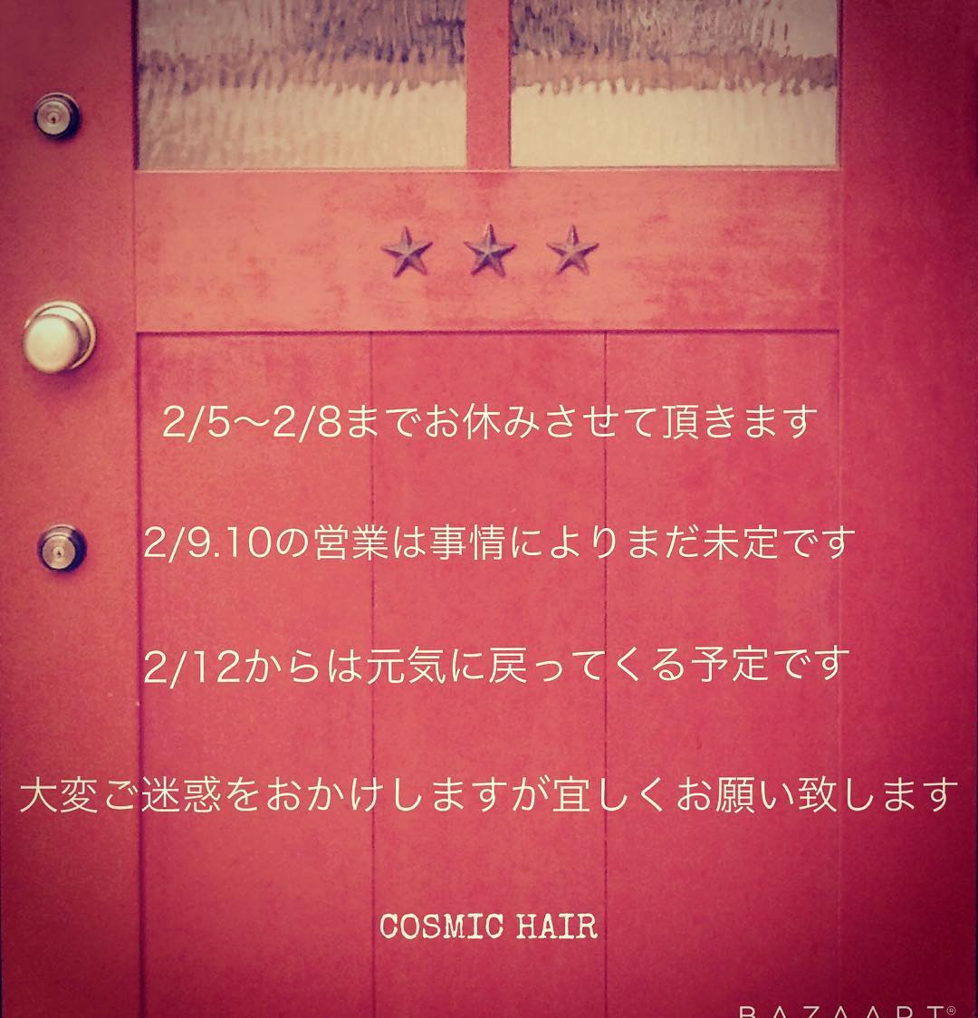 2/5〜2/8まで、お休みさせて頂きます。